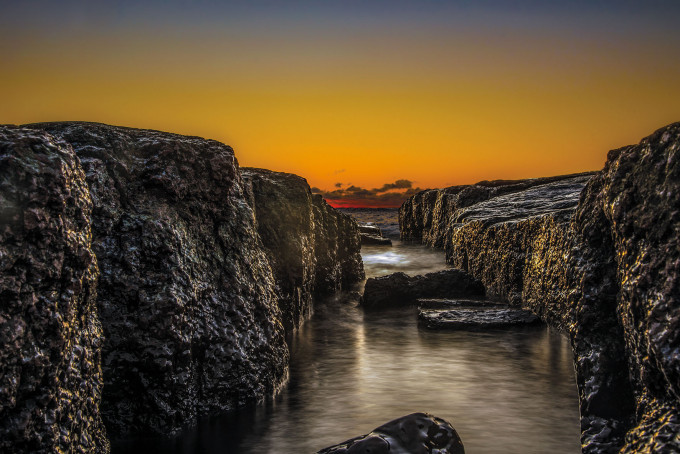 Kokonaisuus, heijastukset tyyneen veteen, auringon nousu niemen päästä, auringon kilo purjelaivan kyljessä, violetista karmiininpunaiseen taittuva väri etualalla ja sommittelu tekevät tästä hyvän kuvan, joka ei ole onnistunut ilman jälkikäsittelyä.